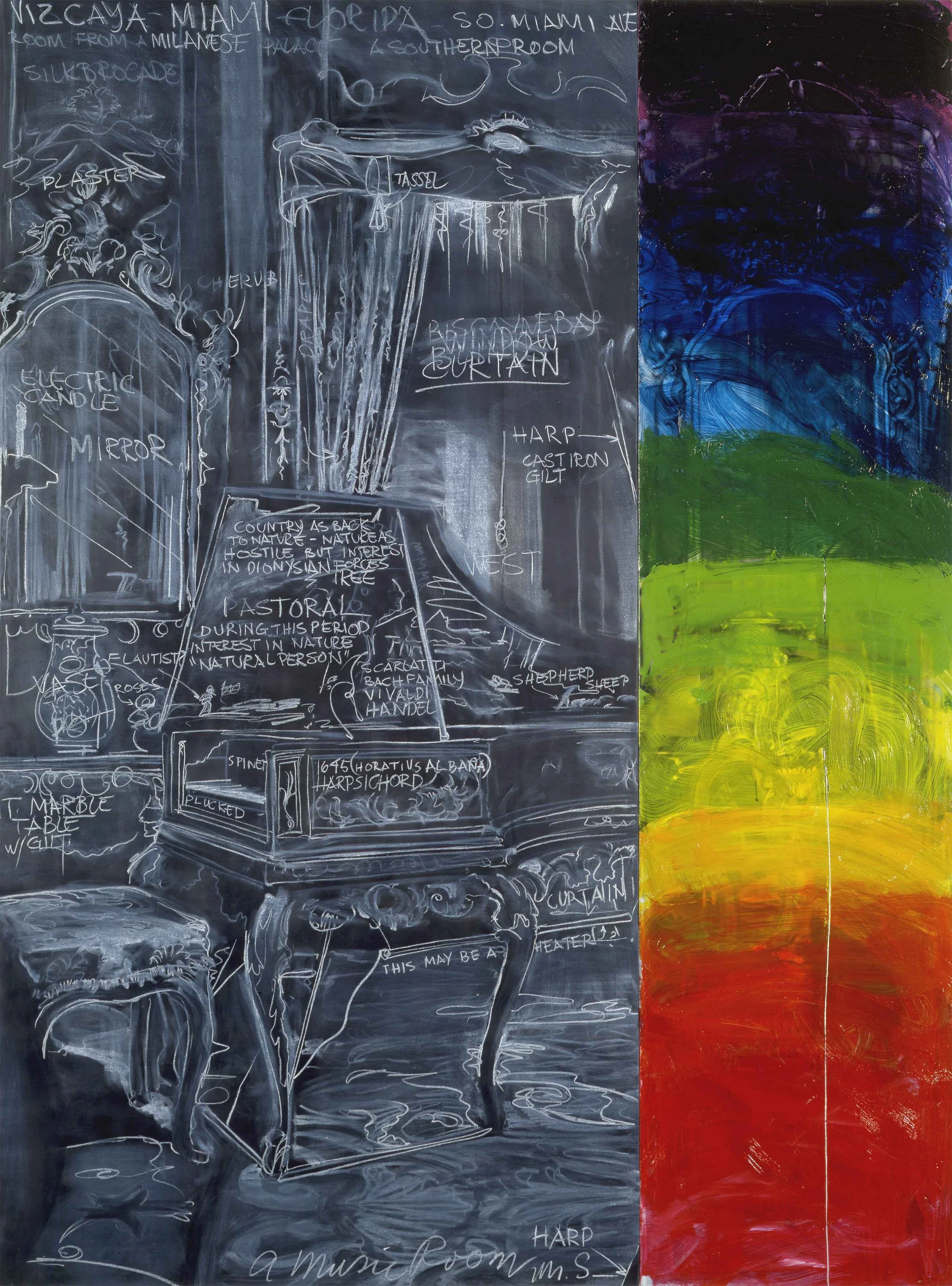 The Music Room (Blackboard Diptych) [1977 - 78] - Acrylic and Pastel on Canvas, 72 x 96 in.